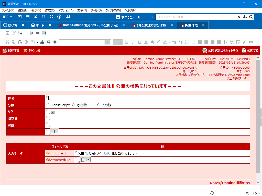 詳細については、Notes/Domino開発tipsサービスをご参照ください。