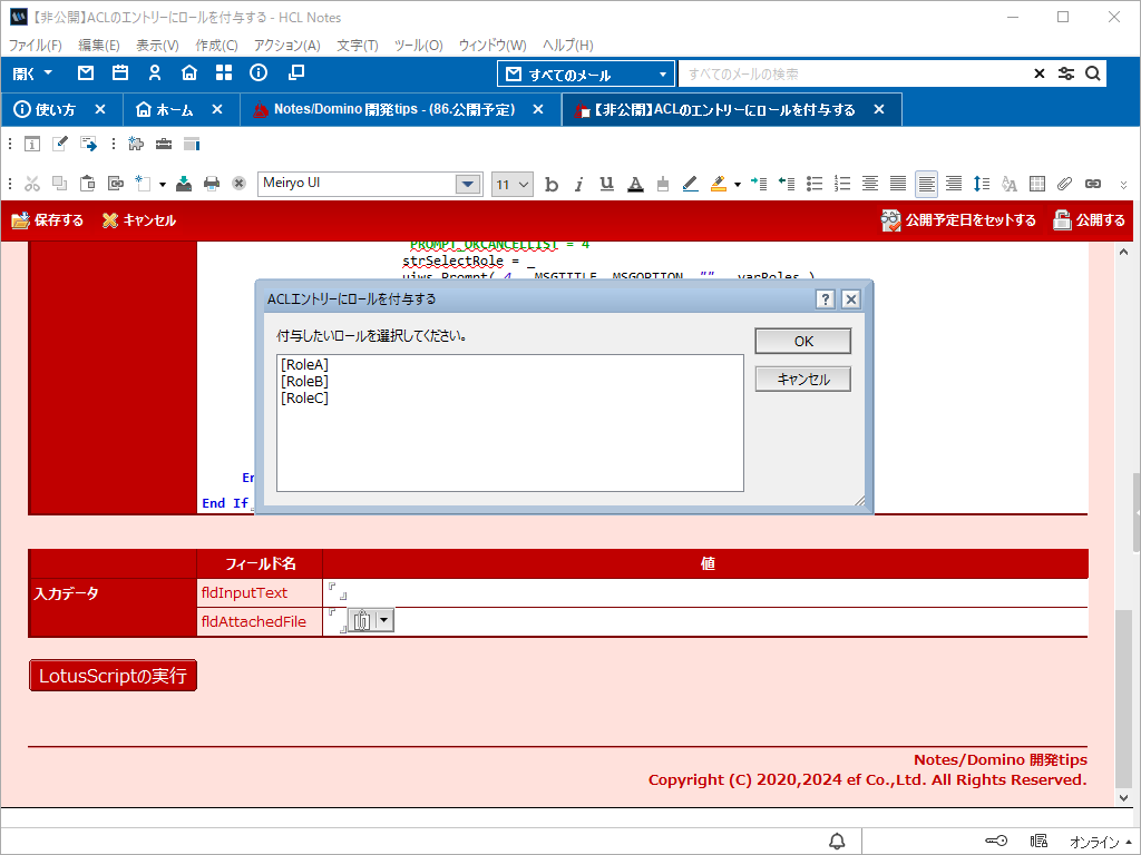次回の配信は、Notes DBのACLエントリーにロールを付与するというものです。