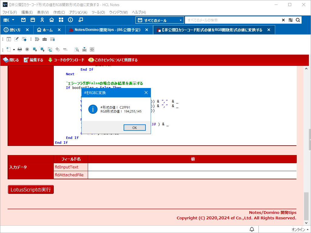 そこでRGB形式に変換する方法をLotusScriptで作成してみました。